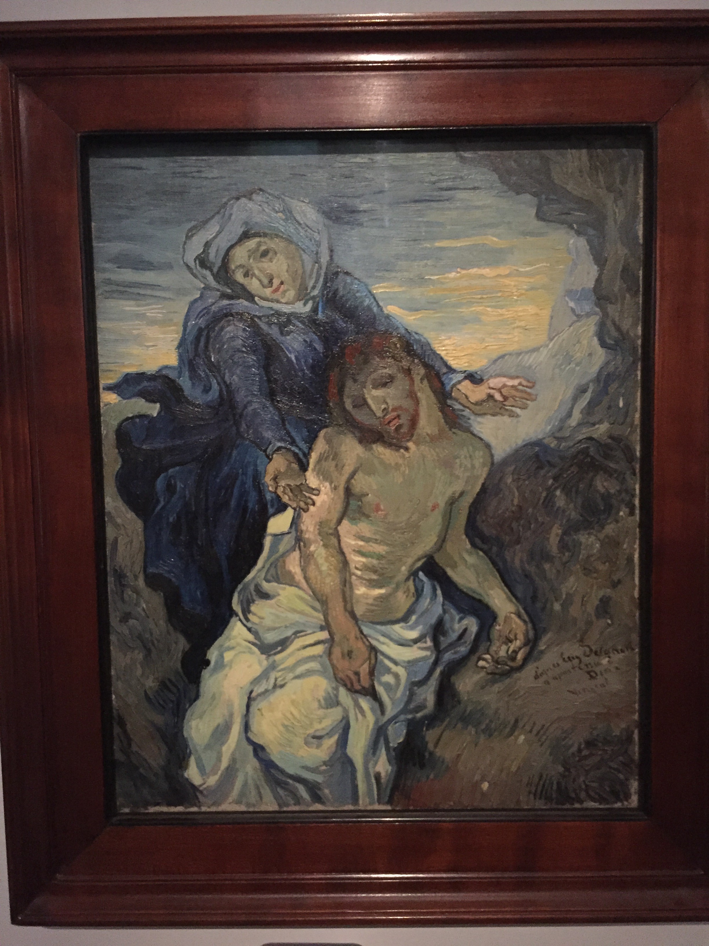 We had to be at the Vatican Museum at 8 o’clock and we didn’t want to be late. So we got a taxi about 7 AM and went to the museum where we passed some time having a delicious cappuccino. At the appointed hour we met our guide as planned. Her name is Simona and she is from Czechoslovakia. We didn’t know until later what a scholar she is. She is an expert at Vatican art and has written a book about the Raphael rooms. Because of our affiliation with the Patrons, our guide was able to take us into rooms where normally one would not be allowed to go. Simona just needed to tell the guard or the Swiss guard the word “Patrons” and magically doors would be unlocked and we would be ushered into very private spaces including the area of the offices of the highest level staff. The first place we went was to the Sistine Chapel before the general public were allowed admission, so there were very few people there and Simona could explain to us the paintings and their significance. We learned a lot about Michelangelo’s intentions in the paintings. For instance, on either side of the ceiling are lunette shaped spaces painted with Biblical scenes , one from the Old Testament and one from the New and they complement each other in the lesson they’re trying to teach. She explained many other nuances that I’d never heard. Then we moved on to the Raphael rooms. I didn’t know the museum had so many shortcuts. The paintings in the different rooms were exquisite. We saw so much that it’s hard to remember all of it. I did take a lot of photos. One I remember particularly was a Pieta by Van Gogh. Another was a sculpture of Mary Magdalene and another sculpture of Jesus after he was taken down from the cross. He is upright and in one view she is supporting Him but if you look at it from another angle, He is supporting His mother. We walked on through passages, narrow stairways and even an elevator operated by a Swiss Guard until we were in an outdoor walkway. There Simona suddenly startled as she encountered a beloved professor and mentor she had not seen in a long time. She was so pleased to see him and delighted that he greeted her so warmly. Then another happy encounter was with Father Hennessy whom we were supposed to meet that morning as he is head of all the Patron groups. He was very gracious and said he hoped we would meet again in Los Angeles when he comes to open the exhibit on the history of the Swiss Guards. I suppose that we will only be allowed to come if we renew our membership in the Patrons. So we will see. But it’s a very good charity with a very worthy cause.(Aren’t they all!)