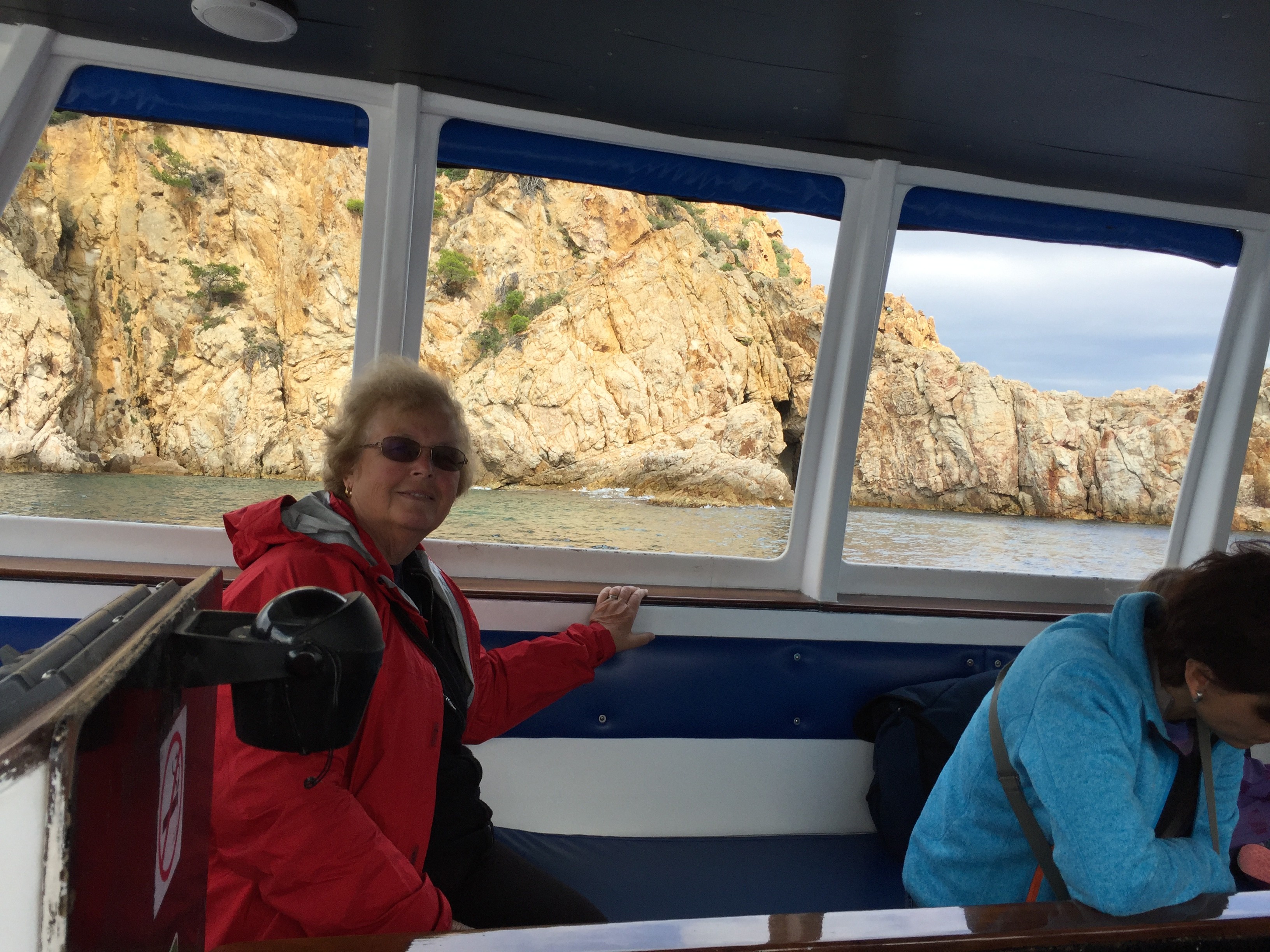 Leaving Rome was not that hard because we’d done about all one can do in two days. I was worried we’d have to fly in the rain but the weather report said it would clear up by noon. I put my guardian angel on it. Because of the storm there was no hot water for my shower so I only got to experience that wonderful rain shower once. That and the clingy foam mattress are the only things I have to complain about Navona Sweet Home. Our driver arrived and just as we were loading our luggage Daniele arrived. I gave him the key and we were off to Fuimicino and Ryanair. I had purchased 1 checked bag, priority boarding and seat selection in addition to the fare to Barcelona. I was a little concerned about all their rules. But we sailed through check-in and security. Our flight was uneventful and renting the car was less grueling than the last time. The GPS routed us on the coastal route instead of the Girona freeway for its own unfathomable reason so we drove through the entire length of Barcelona and then through every little town after that. But Joe is a champion driver and we got to Tossa de Mar and our hotel, the Cap d’Or with few problems. Parking is a big issue in this seaside village that is often over-run with tourists. Our hotel manager gave us some good directions and we were able to find free parking several blocks away. We don’t plan to move the car. We were here to do nothing and I hope that’s what we do. My list includes a walk up to the castle and a boat ride. That’s it. We got settled and found we have an awesome view of the shore from our window. The room has twin beds next to each other so we each have enough room. The bathroom is small but modern with a great shower. I want a hand held shower head at home! We went for a walk and had a really good dinner of ensalada mixta and Paella with chicken and vegetables. So good! So glad to be back in Tossa.