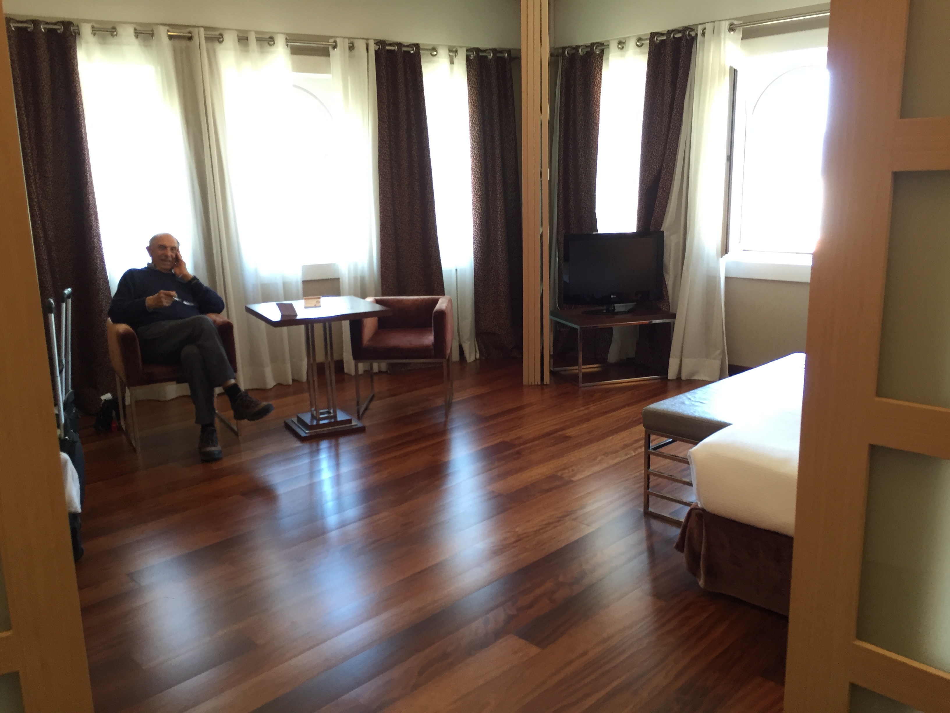 I didn’t sleep well, lots of hip and leg pain that Tylenol won’t help. We had to be up early for the train to Santiago and as it happens (Thank you, Santiago) our hotel is right across the street from the train station. Easy, peasey. We got to Santiago and to our Compostela Hotel, the best place yet. We were upgraded to a Junior Suite. (That Santiago is working overtime!) I must really need a good rest.