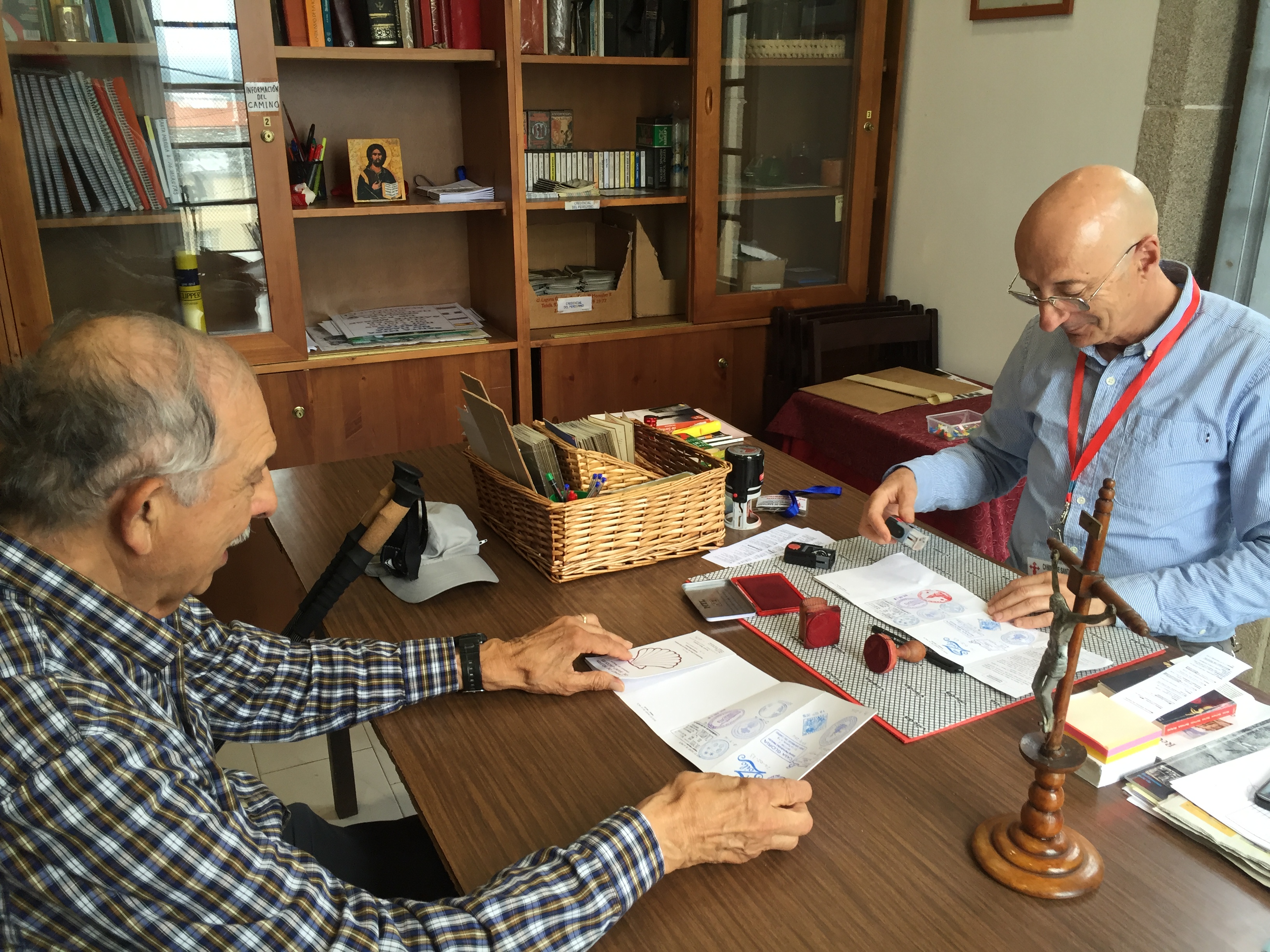 We finished! After our first section of the Camino 15 years ago, where we walked the last 112 Km and received our Compostela, we have completed the circle. We started in Sarria and we ended in Sarria.We took a taxi from the Parador to Sarria, left our bags at Hotel Roma and had the taxi take us back 5-6 Km so we could walk our final walk. It was a little bittersweet and reminded me of coming into Santiago so long ago. I was so tired I could hardly wait for it to be over, yet I didn’t want it to be over. I didn’t know at the time that we would come back 5 more times to finish the whole Camino. I didn’t know it would take 15 years! This time it is really finished. But the memories will last a lifetime. There have been so many changes on the Camino. It seems a lot less reverent now and many, many commercial establishments and businesses have sprung up because of the volume of pilgrims. On a positive note, so many pilgrims are attending services in the small towns along the way. And what hasn’t changed is the hearty “Buen Camino!” From everyone you meet. In our case, they are usually passing us up on the path! So when we finished our walk into Sarria, we went to the first church we saw in the old part of town. There a very gracious gentleman greeted us and gave us our final sello.