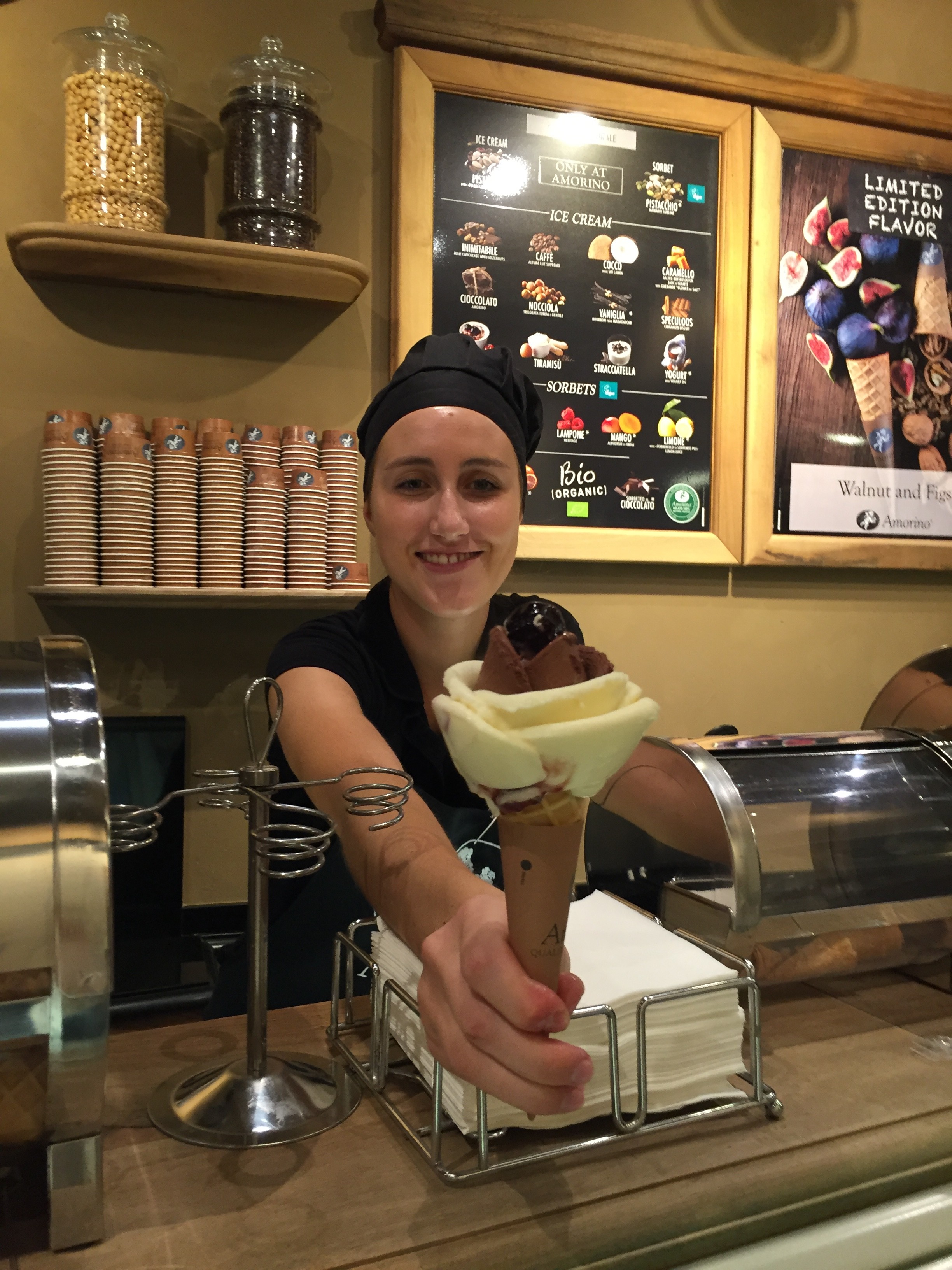 It was great to be in the Cathedral again, to go through the Holy Door again, to light another candle for Michael. We went out to the main square and imposed upon some nice tourists to take our picture. So much for tonight. I’ll add a few photos and head off to my very comfy bed!